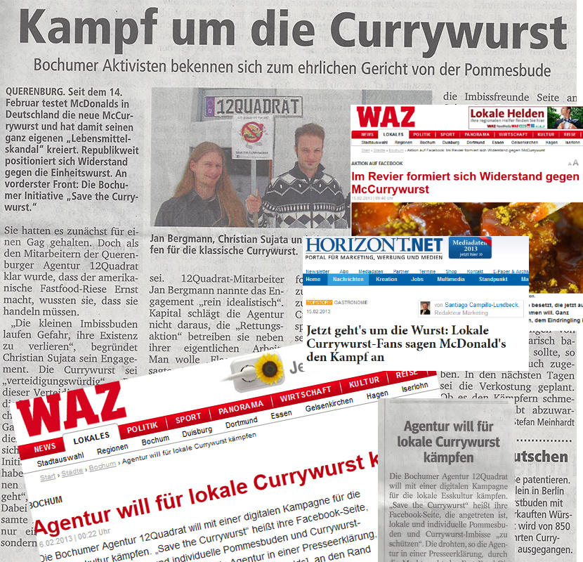 Zahlen + Fakten: 2013 | >3.500 organische Facebook-Fans innerhalb weniger Tage | deutschlandweite mediale Beachtung in Funk, Fernsehen u. Print (Sat.1, WDR, Werben&Verkaufen, HORIZONT, FOCUS, Ruhr Nachrichten, Berliner Kurier, Jungle World u. v. a.)