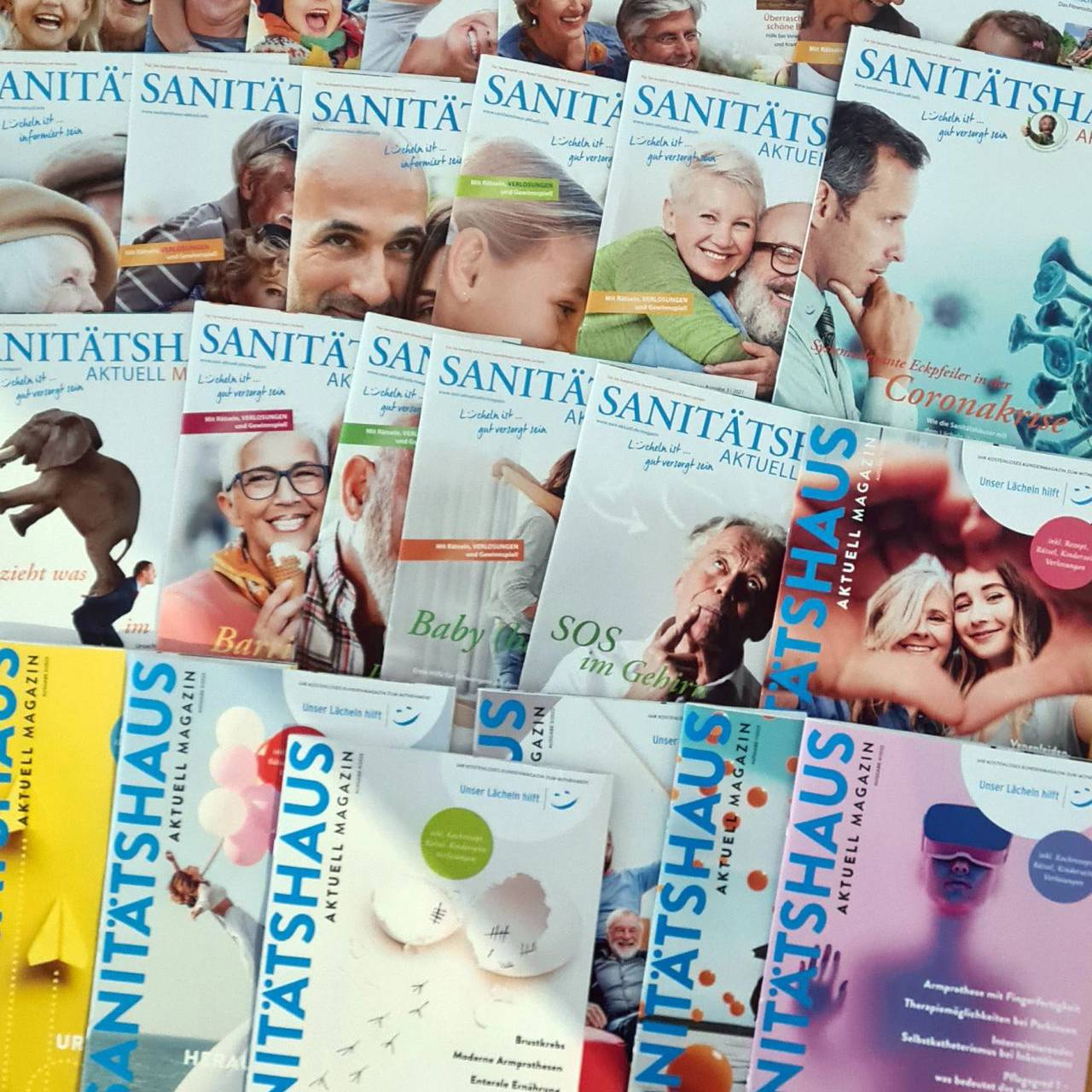 Fakten u. Zahlen: seit 2015 | deutschlandweit | reichweitenstärkstes Meinungsmedium der Sanitätshausbranche | 4 x pro Jahr | bisher 37 Ausgaben | 1.332 produzierte Magazinseiten mit Gesundheitscontent | 2.183.190 gedruckte Exemplare | 78.594.840 gedruckte Seiten | Reichweite: > 1,0 Mio. Menschen pro Ausgabe | deutschlandweit in den Sanitätshäusern und rund 10.000 Arztpraxen